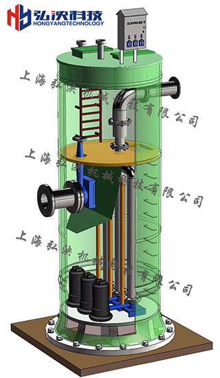 一體化泵站包括玻璃鋼主體、管道、自耦裝置、提籃格柵、控制柜控制系統(tǒng)、水泵、提升鏈、液位傳感器、控制系統(tǒng)和通風系統(tǒng)等部件組成。